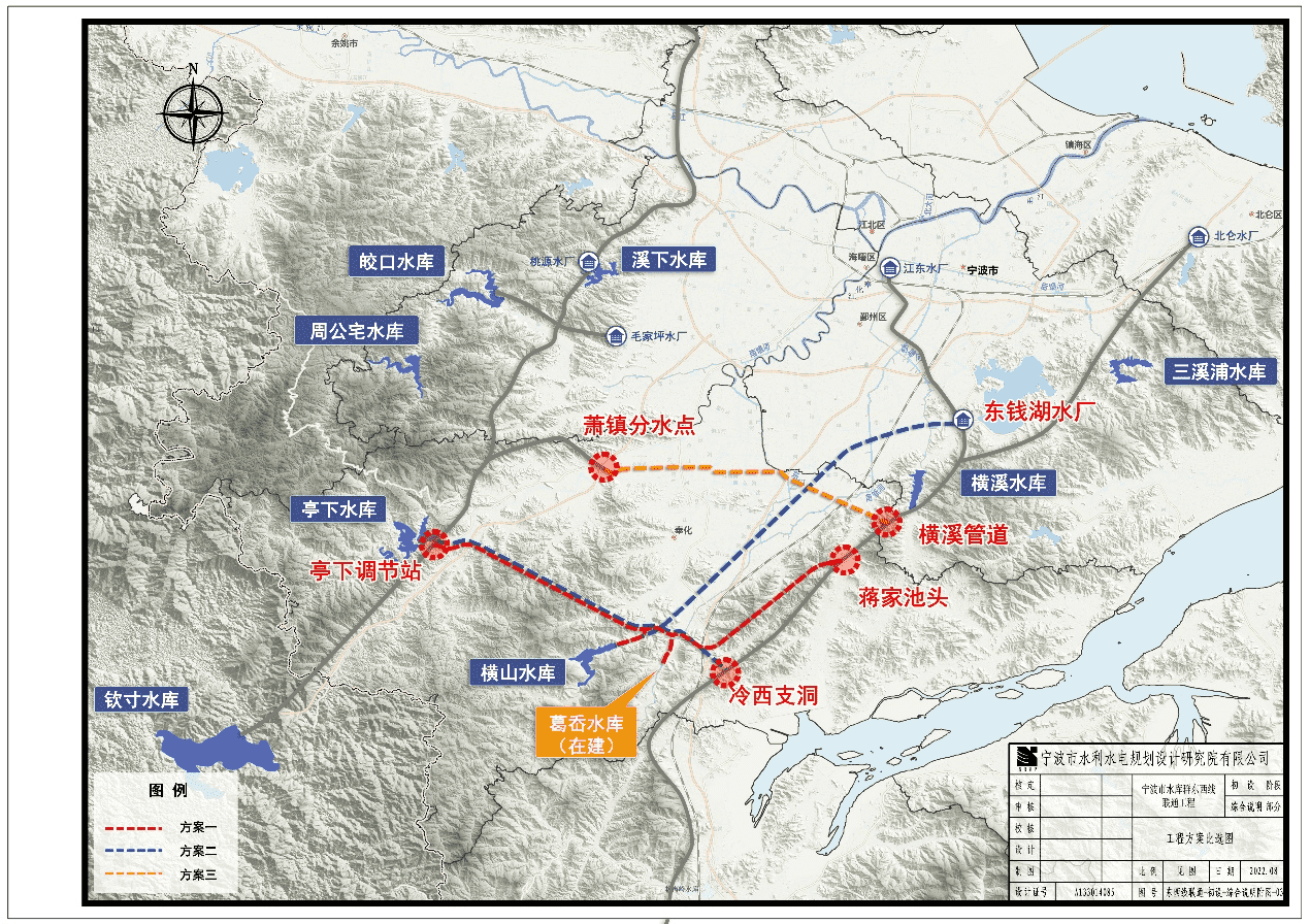 建設(shè)內(nèi)容包括一條干線、兩條支線,以及沿線調(diào)節(jié)站、加壓泵站及各類閥井。工程全線總長約40.73km,其中干線長約36.69km,隧洞長度約30.91km,管道長度約5.80km,橫山支線管道長約1.81km,葛岙支線管道長約2.23km;新建3座調(diào)節(jié)站,分別為新建亭下調(diào)節(jié)站、橫山支線調(diào)節(jié)站、蔣家池頭調(diào)節(jié)站;新建1座加壓泵站,為葛岙加壓泵站;新建各類檢修閥井若干